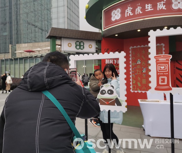 此次活动将生肖传统文化与潮流元素相结合,融入了四川特色熊猫文化,以成都邮政文创品牌“熊猫邮局”为主题,在成都网红打卡地标IFS国际金融中心雕塑广场落地“川潮”风格“壬寅生肖馆”快闪店,分为生肖文化展示区、游戏互动区、打卡拍照区和主题文创售卖区四大板块,参与活动的集邮爱好者可以鉴赏历年发行的生肖邮票的相关知识,体验虎年邮票拼图互动;也可抽取“邮票”签,虎年行大运,来年好运在这取,还可玩转“十二生肖”盲盒邮局,随机领取生肖主题盲盒明信片和熊猫邮局小礼品。