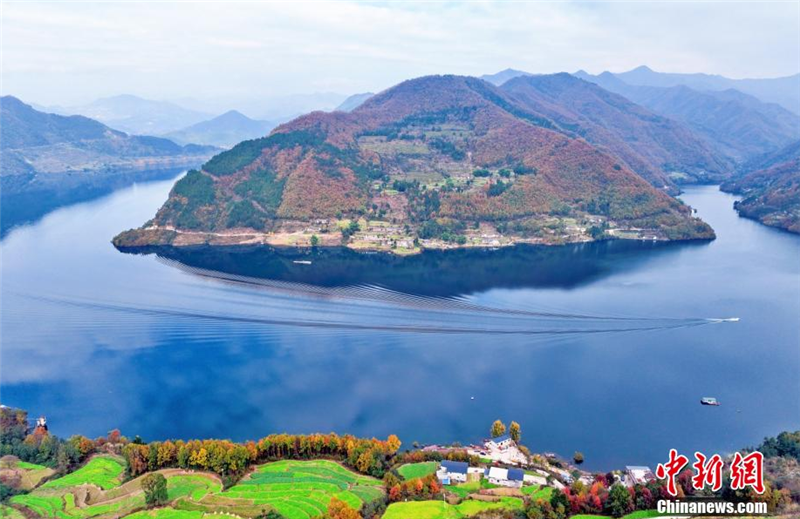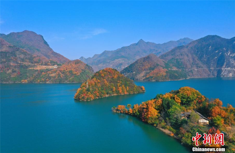 11月下旬,位于四川省广元市境内的白龙湖国家级风景名胜区,呈现着湖光山色共美的景象,碧如翡翠的湖水镜映着五彩斑斓的群山和蓝天白云,一幅幅天然的诗意山水画吸引着纷至沓来的游人陶醉其中,流连忘返。 苗志勇 摄