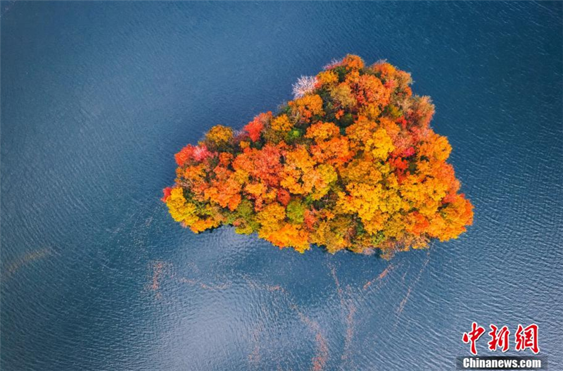 一座小岛犹如一颗巨大彩色宝石镶嵌在碧色的白龙湖。 胡文凯 摄