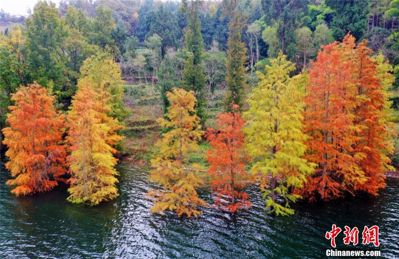 湖畔变成了五彩斑斓的风景画。 苗志勇 摄