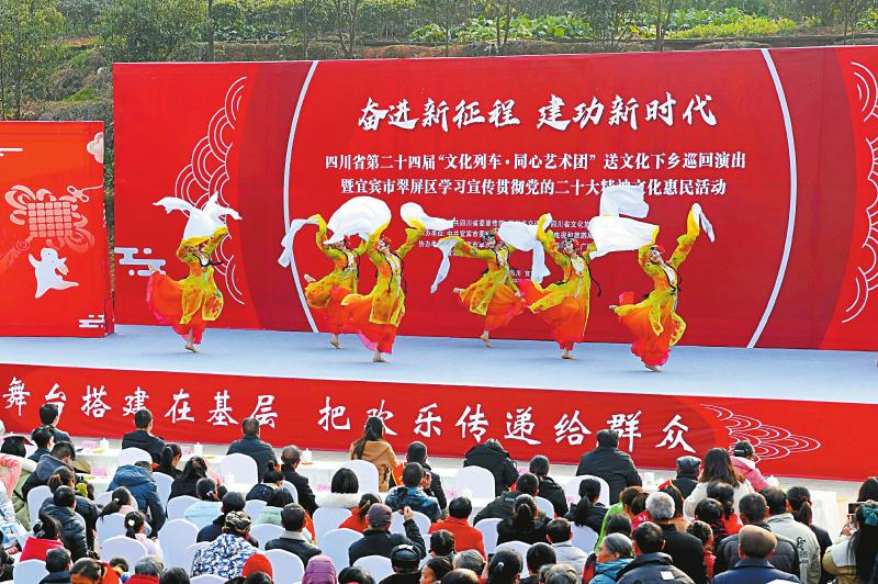 2月,“文化列车·同心艺术团”送文化下乡巡回演出在四川火热上演。