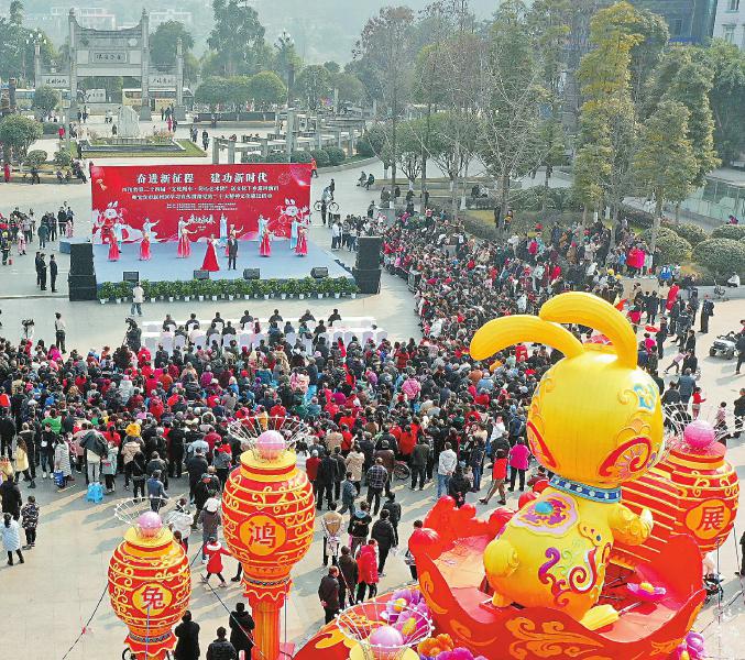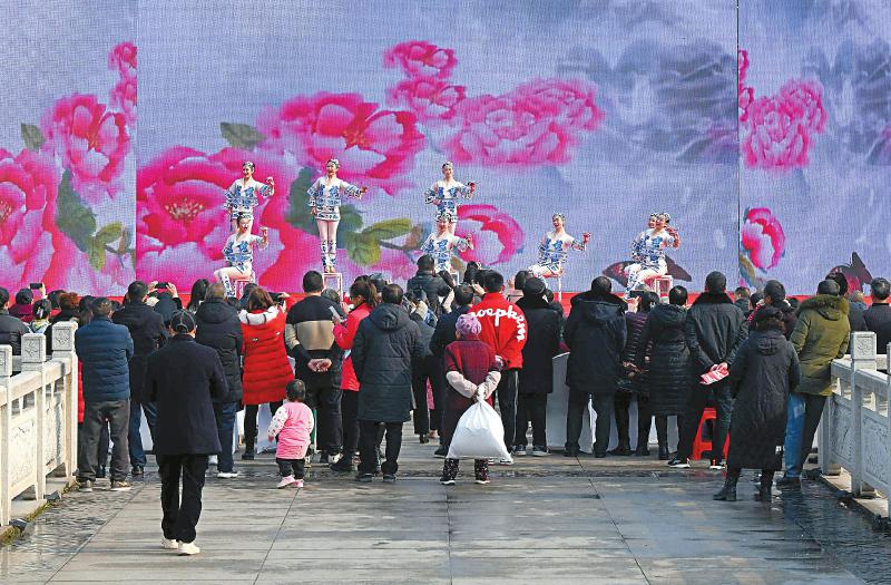 2月1日,舞蹈节目《百花争妍》在宜宾市翠屏区金秋湖镇茶香广场上演。