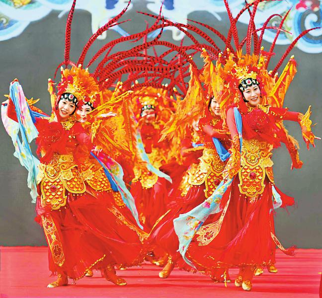 2月8日,演员们在雅安市石棉县世纪广场上表演女子群舞《英姿》。