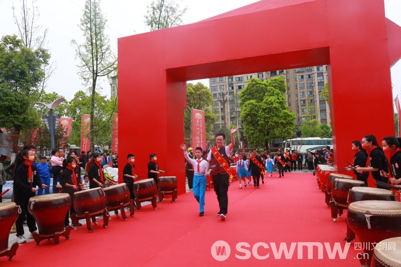 上午10时,四川好人身佩绶带,在少先队员的陪伴下,一一走上红毯,步入发布仪式现场。