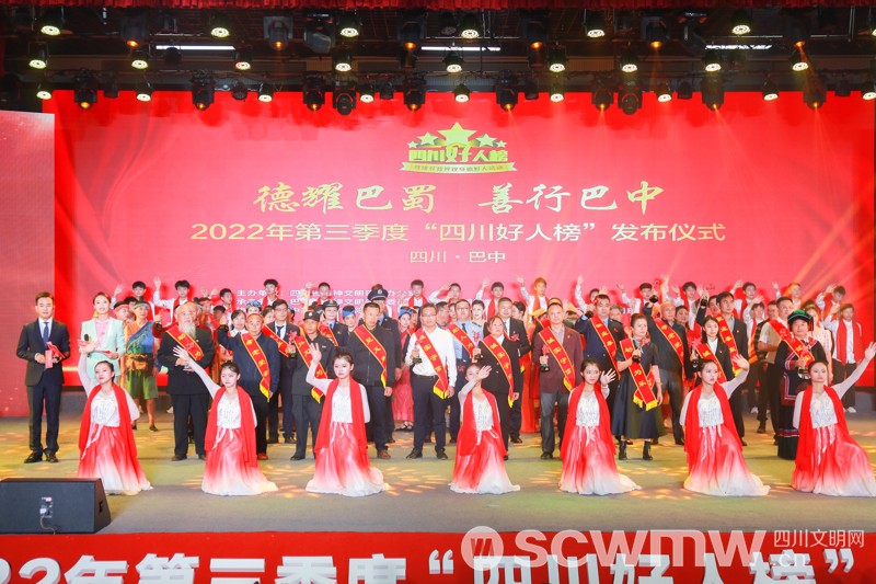 四川文明网巴中讯(袁矛)赓续文明血脉,致敬道德榜样,凝聚奋进力量。9月29日,由四川省精神文明建设办公室主办,巴中市精神文明建设委员会、精神文明报社承办的“德耀巴蜀 善行巴中”2022年第三季度“四川好人榜”发布仪式,在四川省巴中市恩阳区举行。经四川各地前期逐级遴选推荐、专家评审、社会公示等程序,此次共有34名先进典型荣登2022年第三季度“四川好人榜”。这些好人用感人的事迹和高尚的品格,书写新时代的不平凡,树立了光辉的典范。