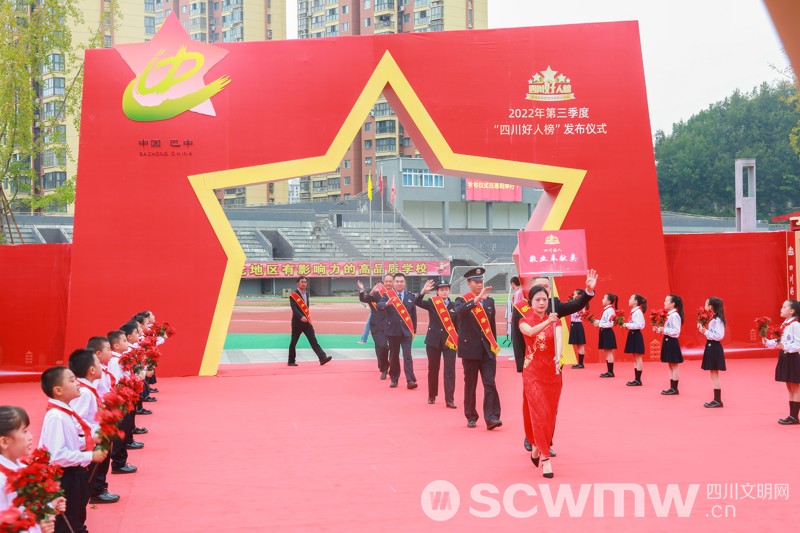 “欢迎欢迎,向您学习;欢迎欢迎,向您致敬。”9时30分,在孩子们热情洋溢的欢呼声中,荣登2022年第三季度“四川好人榜”的“四川好人”代表身佩绶带,一一走过红毯,步入发布仪式现场。
