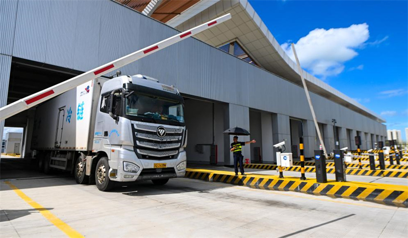 2025年9月17日,离岛货车通过海口新海港和南港“二线口岸”(货运)集中查验场,开往港区。新华社记者 杨冠宇 摄