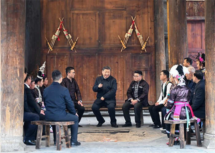 2025年3月17日,习近平总书记在贵州黔东南州黎平县肇兴侗寨考察。