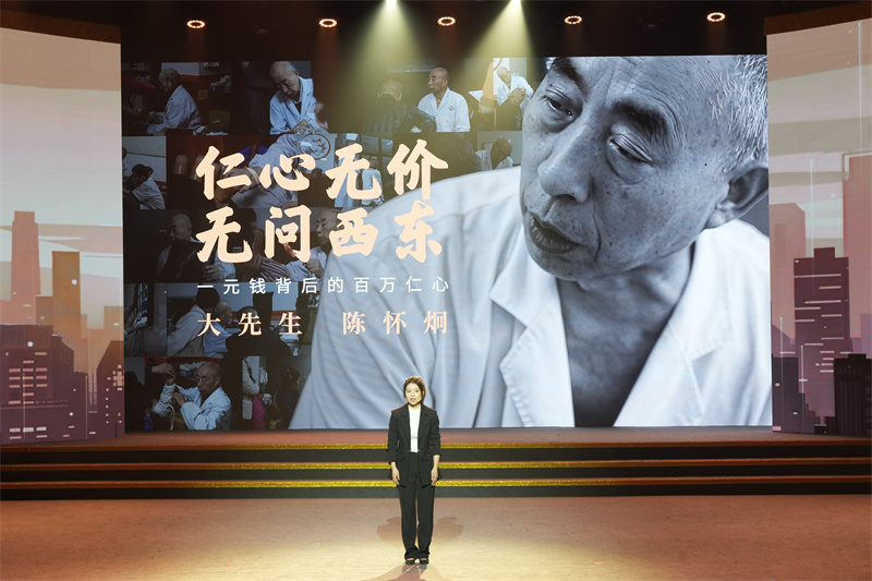 现场讲述《仁心无价·无问西东》以记者的视角展示出四川省天全县中医医院原院长陈怀炯,坚持1元挂号、3元膏药的诊疗费用,并将祖传诊所、独门秘方无偿捐给国家,服务患者超百万人次的医者仁心。“我会继续守在诊室,带教更多年轻医生,也会努力推动医院培养更多医疗人才,这是我能做、也该做的事。”陈怀炯虽未能来到现场,但他用话语传递的信念无比清晰。