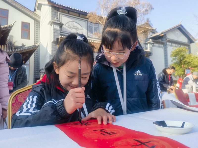 2月8日上午,云南省大理白族自治州剑川古城白族民居的飞檐翘角下,一副副红纸对联铺展开来,当天,“我们的节日·春节”主题文化活动正式启动。