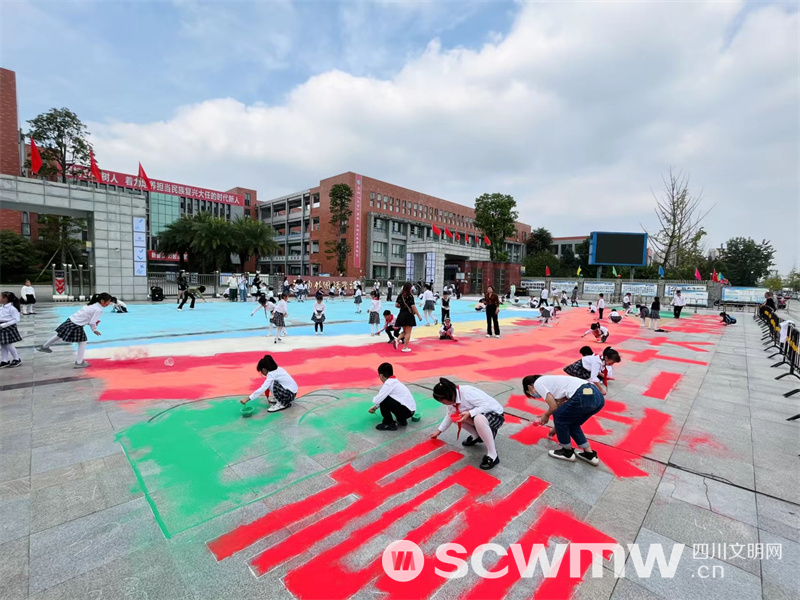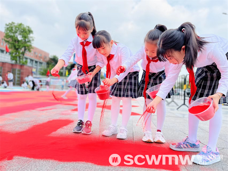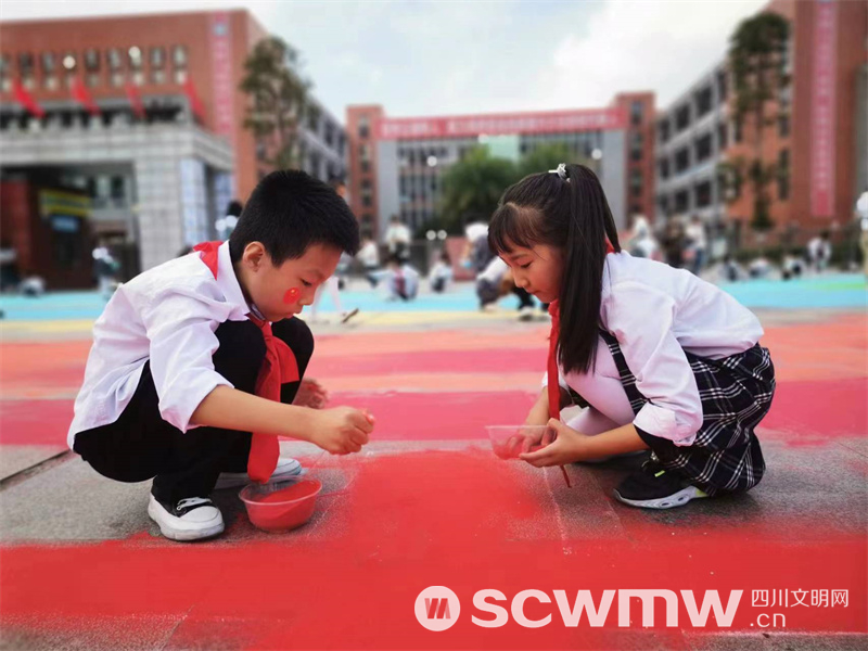 江油外国语学校六年级七班学生何垣锦说:“一起画这幅画真的很像我们国家的发展,只有我们每个人都贡献出自己的一份力量,国家才能越来越好,我也会努力学习、天天向上,争做好少年。”