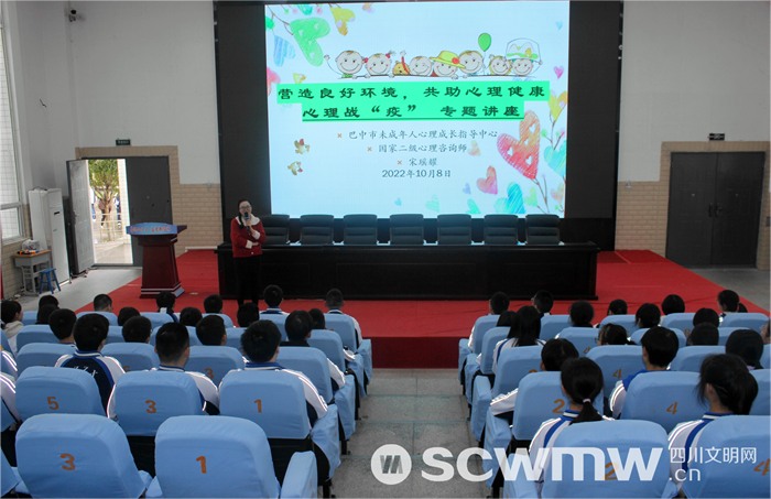 巴中市未成年人心理成长指导中心以“营造良好环境,共助心理健康”为主题,面向高中生开展心理战“疫”专题讲座,普及疫情特殊时期青少年自我心理维护知识和方法。平昌县思源实验学校为了让学生对心理咨询更加了解,给学校学生营造更好的心理成长环境,开展了《心理健康小常识》观看活动。
