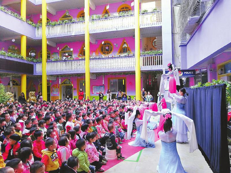 “奶奶我坐花轿,噼噼啪啪放鞭炮,嘀嘀哒哒真热闹……”在去年12月29日上午举行的2022四川非遗年度人物暨非遗保护传承优秀案例发布仪式上,来自彭州市天府路小学的21名小演员戏装登场,表演经典川剧曲目《程咬金照镜子之七奶奶坐轿》片段,时而优美、时而俏皮、时而泼辣,博得阵阵掌声。