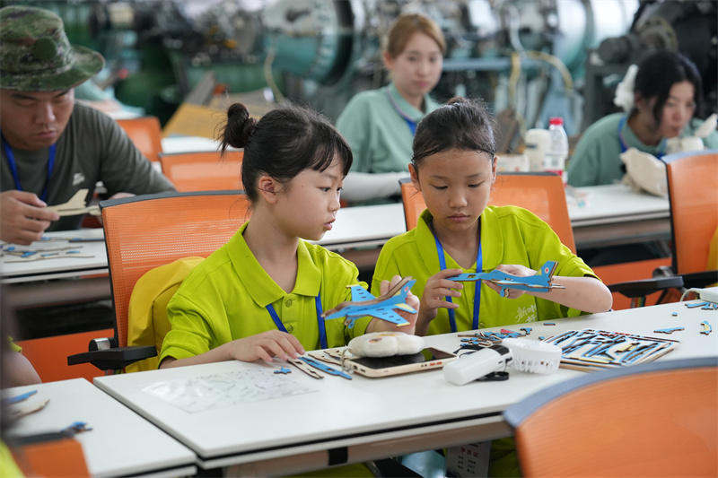 从发动机实训室到手工制作区,航空知识的种子在互动中悄然萌芽。讲解员站在活塞发动机前,讲解飞机发动机的工作原理,并结合视频教学的形式,让原本抽象的机械知识变得清晰可触;手工环节里,少年们专注地拼接3D飞机模型,指尖翻飞间,一个个专属“战机”逐渐成型。