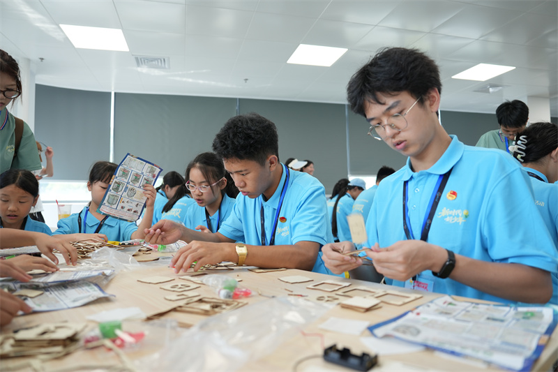 在空气净化器模型制作活动中,孩子们围坐在一起,在老师的耐心指导下,先仔细了解空气净化器的工作原理,然后小心翼翼地一步步组装零件。来自广安市的“新时代好少年”涂依珊拿着小小的螺丝刀,额头上渗出细密的汗珠,试了好几次才把一个小零件安装到位,她笑着说:“原来组装这个小东西这么不容易,每一步都不能马虎。”