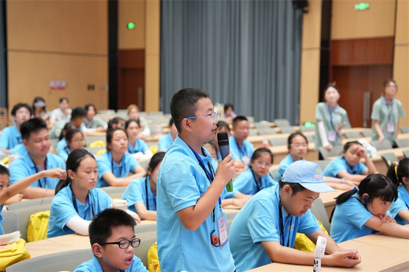 “如果机器能代替您的工作,您还会继续努力吗?”“这么多年遇到困难时,是否想过放弃?”互动环节气氛热烈,少年们高高举起小手,踊跃提问。尹朝晖一一耐心解答,还鼓励大家从小培养钻研精神,勇于探索创新。