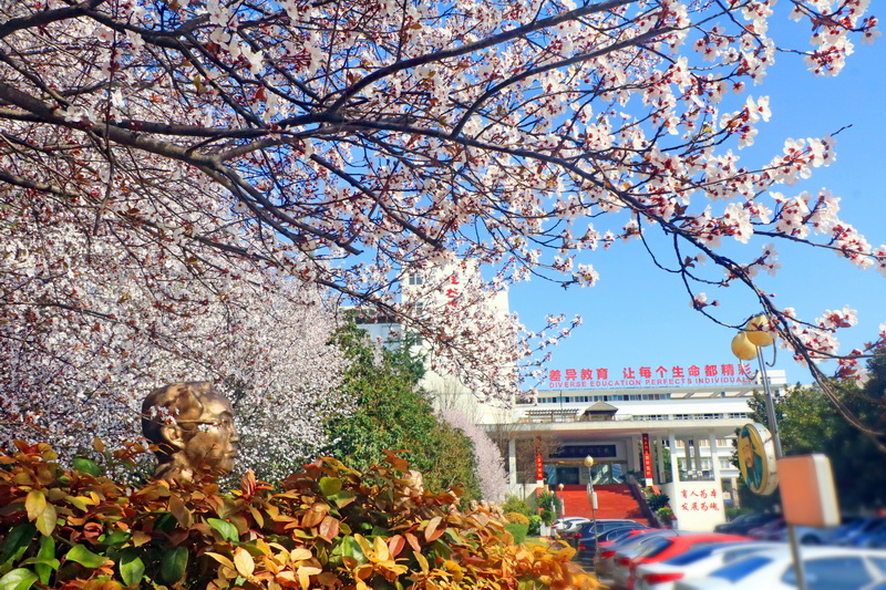 建筑布局错落有致。绿树掩映中,翰墨飘香的教学楼、功能齐全的科技楼、藏书丰富的图书馆、设施齐备的体育馆、科学现代的运动场、温馨舒适的学生公寓、窗明几净的膳食中心、错落有致、交相辉映。啾啾的鸟鸣,朗朗的书声,共同谱写出一曲动人的和谐乐章,滋养学生心灵,陶冶师生情操,化育学子天性。
