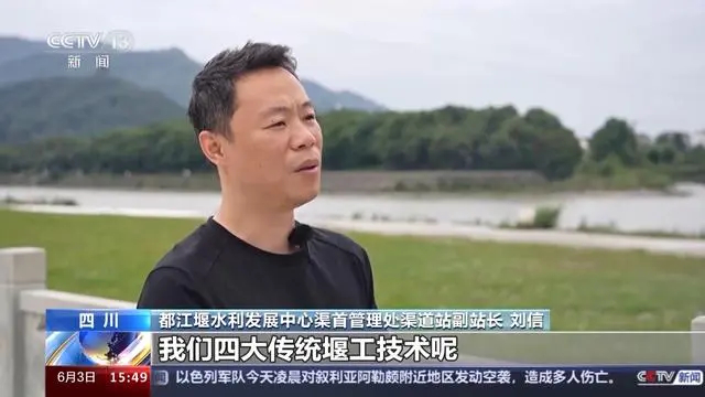 都江堰水利发展中心渠首管理处渠道站副站长刘信:四大传统堰工技术,比如说杩槎围堰,我们在外江截流的时候一般也会沿用。还有竹笼,我们现在把它改进成钢丝笼、铅丝笼,但是它的结构形式是一样的。在抢险应急的时候都会用到。李冰治水的千年智慧至今仍在沿用,造福着我们灌区的百姓。