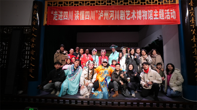在泸州河川剧艺术博物馆,外籍友人们不仅观看了川剧经典剧目《射雕》,还穿上了戏服亲自上台,体验了一把川剧传统服装的魅力。来自美国的罗一一家对川剧很感兴趣。“今天我们来到了泸州河川剧艺术博物馆,了解到了川剧悠久的历史。还知道了川剧不同颜色的脸谱代表着不同的意义,这非常有意思。我希望今后还有机会能够体验到中国传统的戏曲艺术。”罗一意犹未尽。