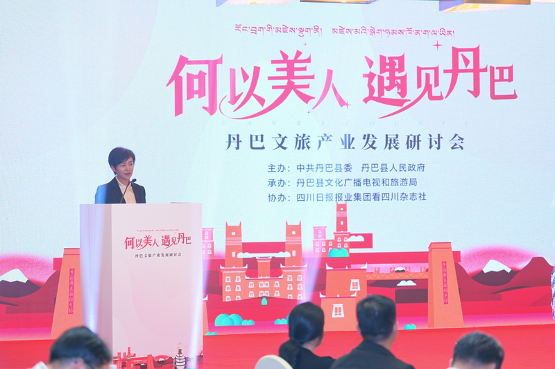 会上,丹巴县委副书记、县长李樱向与会专家学者、行业代表介绍了丹巴得天独厚的旅游资源、多姿多彩的民族风情和新时代丹巴的发展变化。李樱表示,丹巴将以“春赏花、夏纳凉、秋选美、冬沐阳”全域全季文旅节庆活动为依托,深入挖掘嘉绒特色文化资源,完善相关配套产业,以文塑旅、以旅彰文,着力塑造“醉美丹巴”的旅游形象,让“古碉·藏寨·美人谷---中国最美乡村”的金字招牌享誉海内外,并诚邀社会各界到丹巴观光旅游、交流洽谈。