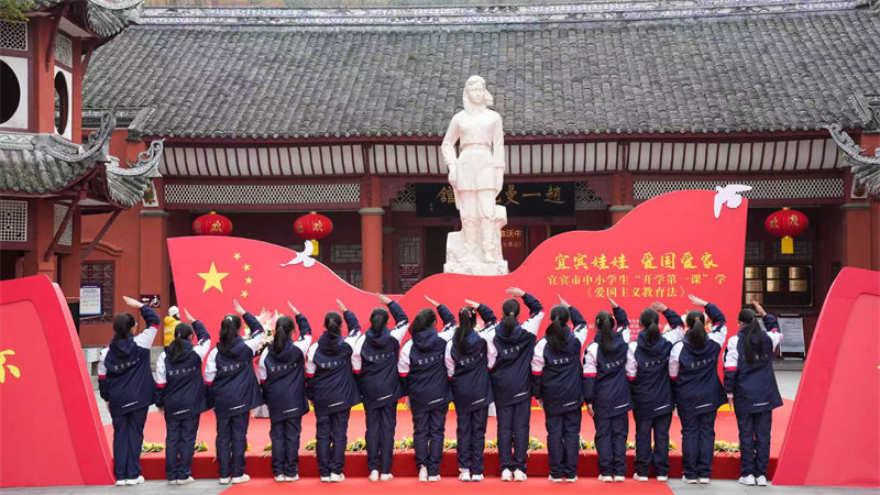 学生代表在宜宾市赵一曼纪念馆进行“开学第一课”活动 罗顺 摄