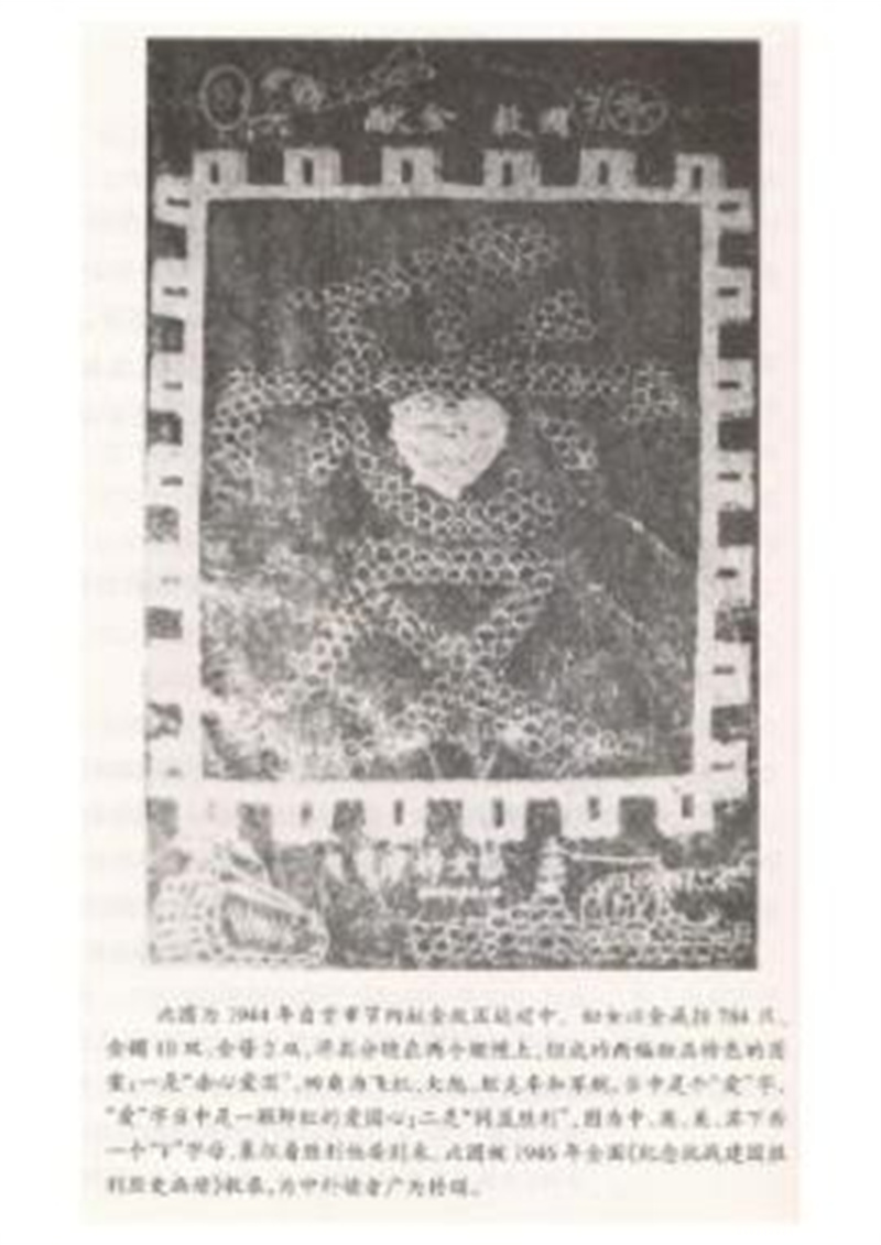 自贡妇女在献金大会上用金银器缝制的“赤心爱国”图案。自贡市贡井区地方志办供图