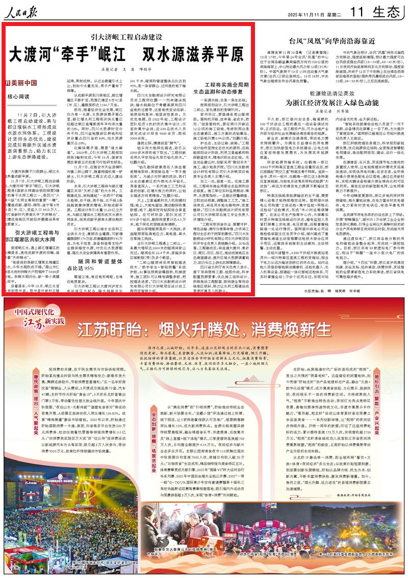 11月7日,引大济岷工程启动建设,大渡河将“牵手”岷江。引大济岷工程是《国家水网建设规划纲要》确定的骨干水网工程之一,是四川“六横六纵”水网主骨架的重要“一横”,将覆盖成都、德阳、绵阳、遂宁等8市43县(市、区),受益人口3413万人,对打造新时代更高水平“天府粮仓”、支撑成渝地区双城经济圈建设具有重要意义。