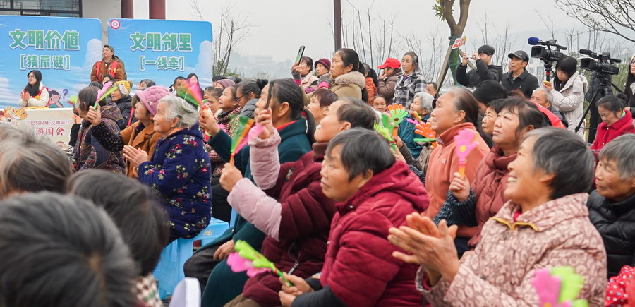 12月30日,川南渝西新时代文明实践带上,重庆荣昌区与四川隆昌市联合举办“巴山蜀水迎新年 双昌和鸣谱华章”活动。台上精彩的政策理论宣讲、文艺节目,与台下暖心义诊服务、“巴蜀同脉 文明同行”游园会、“双昌”农产品展销同步开展,让群众在欢声笑语中感受区域协同发展带来的活力与实惠。