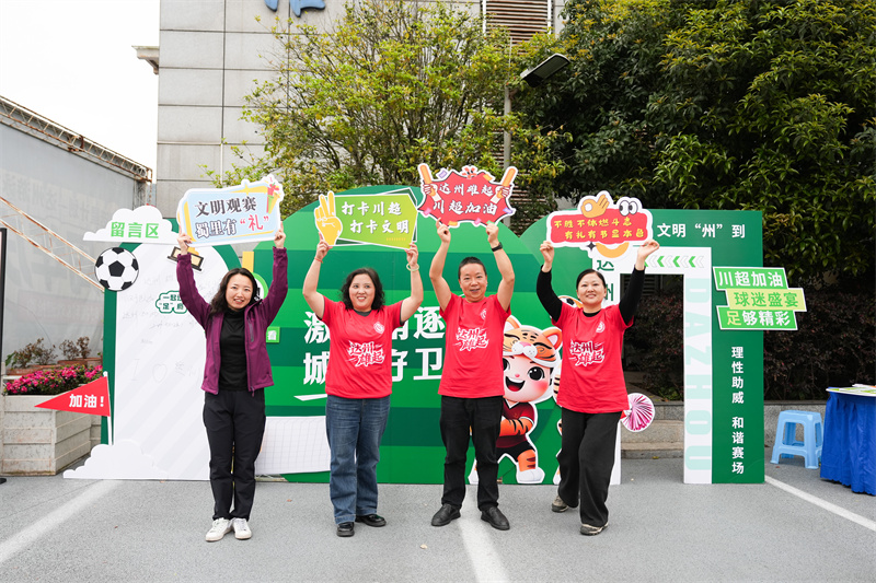 在达州市体育中心门口,“川超‘达’人 文明‘州’到”主题文明打卡框吸引了众多球迷观众合影留念。打卡框上的“理性助威 和谐赛场”“文明观赛 共享川超”等内容与球迷观众的笑容一同定格,文明观赛的种子在轻松愉悦的氛围中悄然播撒。