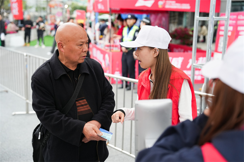志愿者引导观众有序入场。袁矛 摄