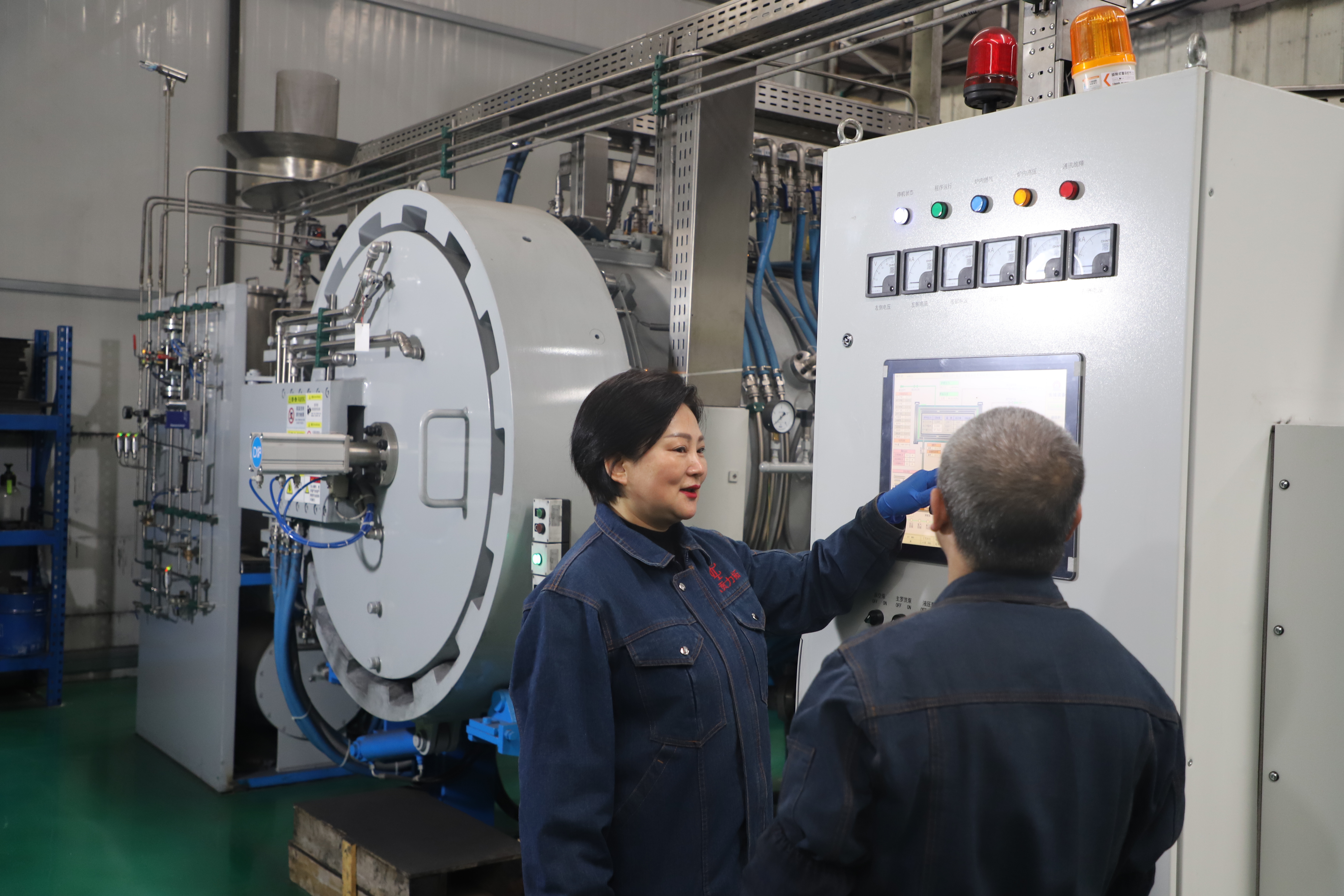 陈桂芳在车间巡查。