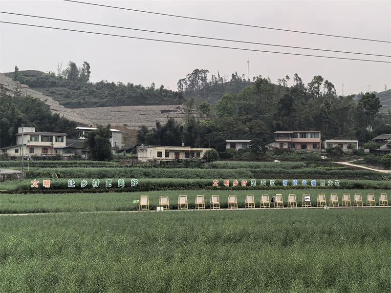 除了主会场的集中活动,当天还同步开展了丰富多彩的配套活动。在丰收广场的“共绘文明树”背景板上,人们在特制“树叶”上写下文明心愿,共同绘制象征全市各区县携手共建文明风尚的“文明之树”。沿着油菜花田核心步道,孝老爱亲、邻里互助、移风易俗、环保赏花四个主题打卡点错落分布,“摒弃陋习·婚事新办”等各具特色的拍照装置吸引村民游客驻足留影,传播着文明理念。
