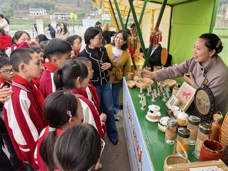 文明实践集市上,来自宜宾各县区的文创产品、非遗产品琳琅满目,当地村民自产的农产品备受青睐,市县书画名家现场挥毫泼墨,书写家风家训免费赠送。长宁竹编市级非物质文化遗产代表性传承人、长宁县小红桥竹编工艺品专业合作社理事长万登贵的竹编摊位前围满了人,精巧细致的竹编摆件、实用的竹编生活用品引得众人驻足观赏、咨询选购。“竹编是咱们宜宾的传统技艺,也是乡村文化的一部分,这次把非遗手艺带到文明集市,不仅能让更多人看到传统工艺的魅力,更能借着乡风文明建设的东风,让非遗和乡村产业、文明风尚结合起来,用老手艺传递新风尚,带动乡亲们靠技艺增收。”万登贵说。