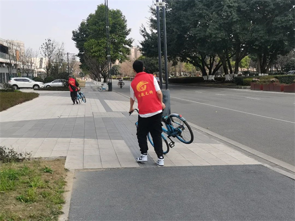 启动仪式后,邛崃市8支专业志愿服务队志愿者走上街头,开展文明劝导志愿服务,倡导随手做志愿,随处守文明,并将乱停放的自行车摆放整齐。
