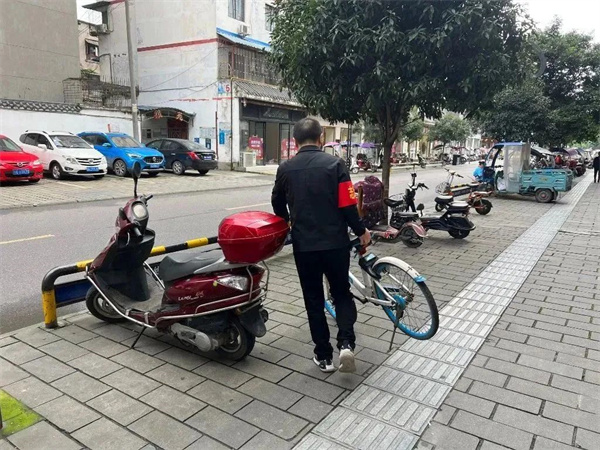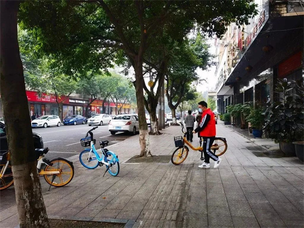 3月3日,市商务局党员志愿服务队开展规范自行车志愿服务活动,集中对文君街、抚琴街道路两侧的共享单车进行规范摆放。