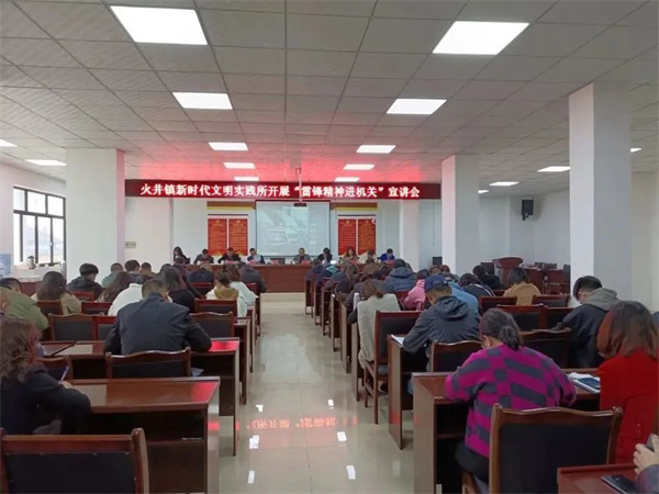 3月6日,火井镇新时代文明实践所开展“雷锋精神进机关”宣讲会。镇党委委员、宣传委员、组织委员、人大副主席李雪梅进行了宣讲,全体镇干部、村(社区)书记参加了会议,并进行了研讨交流。