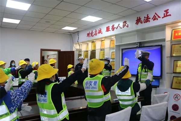小交警们来到了人流密集的交通要道,在交警和青年志愿者的带领下开始文明劝导。他们始终保持着高度认真负责的态度,指挥路口的行人有序通行、为行人指路、宣传交通法规等,有条不紊地对不文明参与交通现象进行制止和劝导。小交警们全程参与,深刻感受了交警工作的不容易,也体会到了交通文明建设需要大家的共同参与。