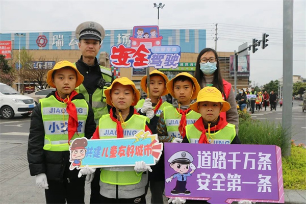 邛崃公安开展“小手拉大手·平安童伴行”交通文明劝导志愿服务活动