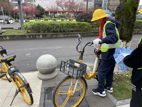 紧接着,小交警们将学到的知识向群众进行宣传和劝导。队伍共分为4组,在交警的带领下,小交警们走进附近的小区,向市民发放文明交通宣传单,在道路上巡逻有没有违规乱停车辆,整理路边乱停乱放的共享单车。路过的行人纷纷为小交警们点赞。