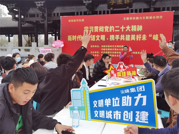 为助力文明城市创建,展现良好城市风貌,营造浓厚创建氛围,发挥文明单位示范引领作用,近日,成都市沄崃投资集团有限公司委员会在邛崃市新时代文明实践中心和市文明办的指导下,在凤求凰公园开展学习贯彻党的二十大精神“新时代女神话文明·携手共建美好未‘崃’”主题活动。