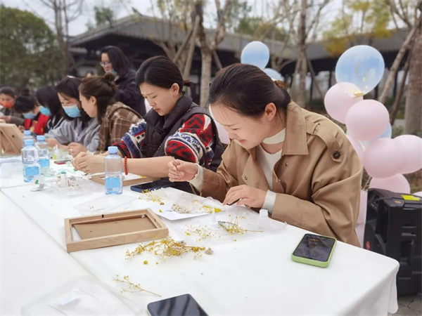 志愿者杨娟邀请大家一起创作“永恒的女神”永生花相框,将祝福送给美丽的女神们。