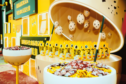据了解,这是一场“蛋皇”鹌鹑蛋品牌的高调入市活动,作为盐津铺子品类新王牌,这场区别于行业传统展陈形式的品牌快闪,于春糖期间迅速出圈。活动持续至3月17日,还为成都市民带来“1吨鹌鹑蛋免费试吃”福利,并于活动现场设置了“中了!蛋皇”趣味投壶游戏、分享互动,蛋皇显眼包、胸章、公仔等精美定制周边礼更是备受热捧。蛋皇的爆火,为众多品牌商入主年轻人零食口袋提供了新思路。