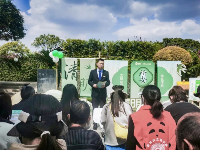 随后,在院山公墓广场,“除陋习 迎新风” 移风易俗宣讲员登台,围绕文明祭祀、殡葬改革等内容展开深入宣讲,用通俗易懂的语言向在场群众普及移风易俗的重要意义,倡导大家摒弃传统祭扫陋习,树立文明、绿色、环保的祭祀新风尚。紧接着,志愿者、从业者以及市民代表共同发出厚养薄葬、文明祭祀的倡议,呼吁社会公众以实际行动践行文明理念,传承孝老敬亲的优良传统美德。