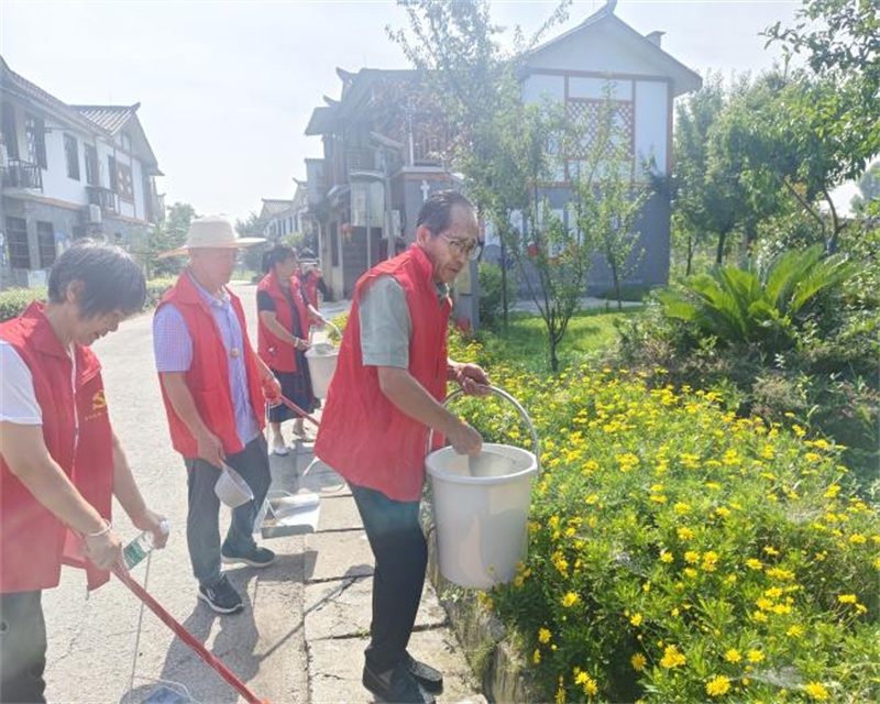 活动中,志愿者们分工明确、配合默契。有的拿着扫把清扫主干道上的落叶、纸屑等垃圾;有的用铲子铲除路边的杂草和顽固污渍;有的提着水桶、拿着抹布擦拭亭子、宣传栏等公共设施;还有的志愿者负责为路边绿化植物浇水。大家不畏酷暑,干劲十足,经过一上午的辛勤劳动,整个村庄的环境卫生状况得到了显著改善。