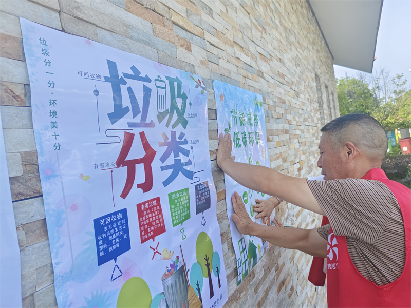 此外,志愿者们还在村庄的显眼位置粘贴了爱护环境的海报,通过这种直观的方式,向村民们宣传环保知识,倡导大家养成爱护环境的良好习惯,进一步培育村民的文明意识。