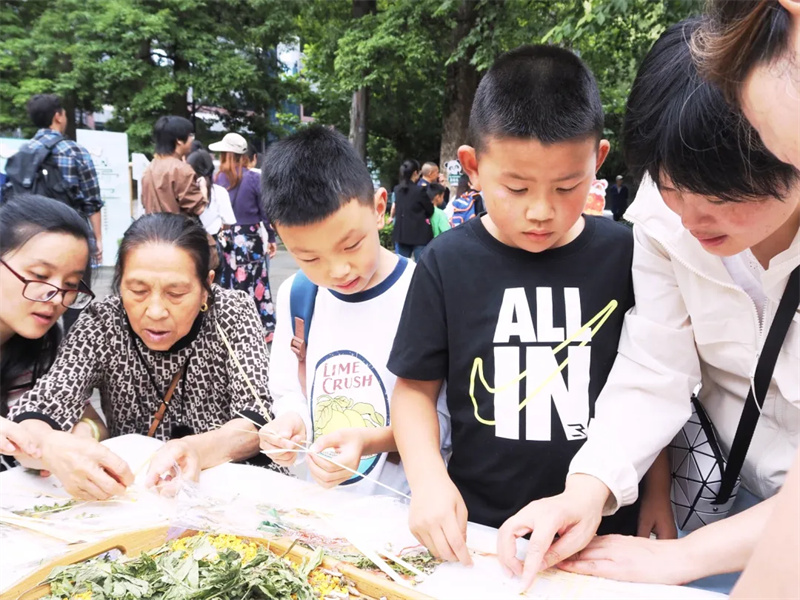 活动以非遗手作互动体验为核心亮点,邀请草木合香、青城马椅子、张醪糟等都江堰本土非遗项目入驻现场。在非遗传承人的悉心指导下,游客们热情参与端午粽子包制、艾草香囊调制、竹编龙舟制作等民俗手作活动。现场提供丰富的材料与工具,市民游客充分发挥创意,制作出了独具个性的端午纪念品,并将其带回家中留存纪念。活动不仅让市民、游客近距离领略到非遗技艺的精妙,更让他们在亲手实践中深化了对端午传统习俗的理解,极大增强了民众对传统文化的认同感与传承使命感。