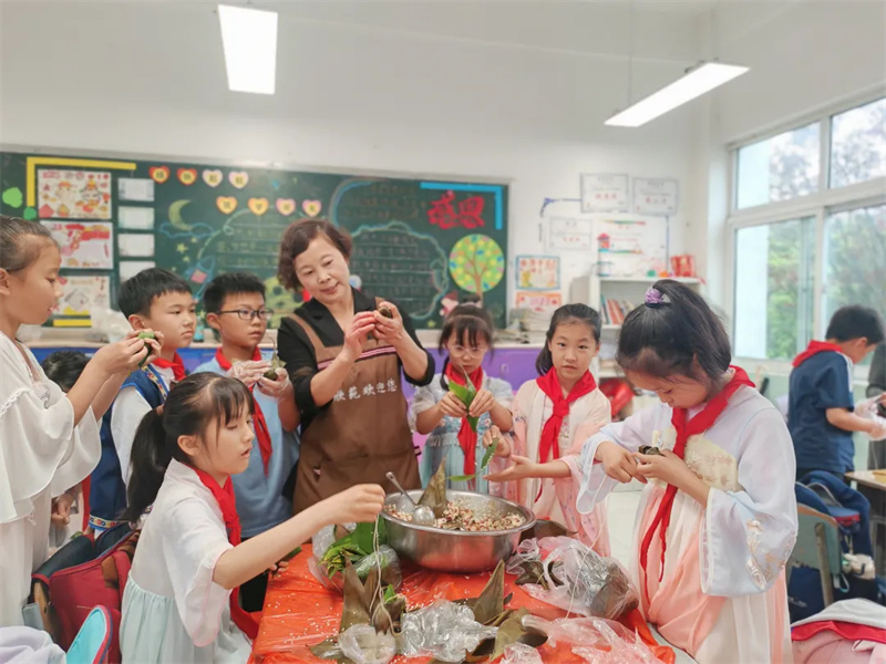 端午临仲夏,时清日复长。值此粽叶飘香时节,都江堰市天马学校将传统艺术节与端午民俗相融,邀家长志愿者与学子共赴文化雅集。粽叶舞动间,“彩线轻缠红玉臂”的诗意跃然指尖,“少年佳节倍多情”的欢笑回荡校园。这场跨越千年的文化接力,使传统技艺在童真笑靥中焕发新韵。家校共筑文化薪火,让端午不仅是舌尖的盛宴,更成为流淌在血脉里的文化记忆。