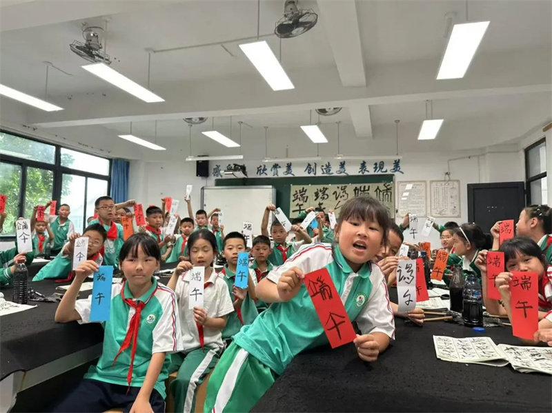 粽香盈满校园,墨韵传承文化。端午佳节前夕,都江堰市七一青城山学校开展“巧手迎端午,童心传文明”主题活动。课堂上,同学们化身“小小美食家”,将糯米、红枣裹进粽叶,在老师指导下包出形态各异的粽子;书法教室里,毛笔挥毫泼墨,“端午安康”“粽情端午”等作品跃然纸上,尽显传统文化魅力。