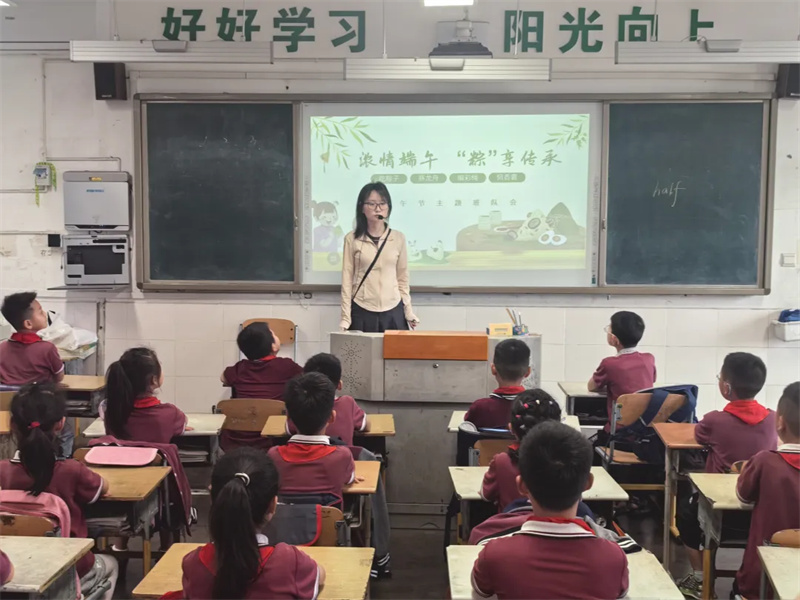 在端午节之际,都江堰市龙江路小学集团万达校区开展“浓浓端午情 悠悠传承心”主题活动,通过丰富的形式让学生了解端午文化,参与端午活动,传承中华优秀传统文化。同学们饱含深情朗诵了端午经典诗作,通过图文结合的方式讲述端午的历史渊源与文化内涵,带领大家穿越千年,感受古人的智慧与情怀,让在场的师生们深刻领略到端午节所蕴含的爱国主义精神和民族精神。学生还将利用端午假期参与包粽子、做香囊等传统活动,用心感受、动手操作,在浓浓的氛围中进一步了解和传承传统文化。