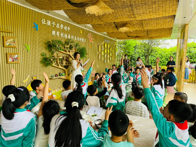都江堰市绿地土桥小学在端午佳节之际,以“粽香传情承古韵,巧手制面品端午”为主题,开展劳动实践活动。学生们在“粮趣工坊”中化身一个个小厨师,和家长老师一起和面、抻拉、调味,完成一碗碗夏日限定“端午凉面”。本次活动让传统节日“活”在指尖,更在劳动中传递感恩与温情,书写属于孩童的端午记忆。